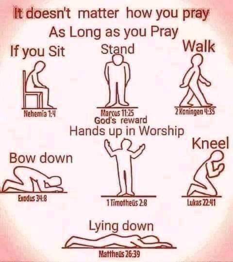 In the last few years, I have had the privilege to walk alongside Christians of many denominations and backgrounds. I have seen how they do prayer. Some bow their heads others look up. Some use lots if words, others not many. Some pray about big things, others pray about everything. Some stand, some kneel, some place hands together, some hold them in the air. Some pray inside, others go for walks. Some sing or pray in tongues, some quote scripture and soke speak from the heart. Some throw out a quick prayer when the situation needs it, others promise to pray later at their normal time.